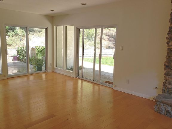 Tranquil, lush grounds surround this 3-bedroom, 2.5 bath, 1,750 square foot home in Sherman Oaks. South of the Boulevard, nestled in the Santa Monica Mountains, above the Buckley School and mile below Mulholland/Beverly Glen boulevard, it is situated at the end of a quiet cul-de-sac. Located in the coveted Roscomare Road School area the home has easy access to the westside, Beverly Hills and is six miles to UCLA. The home is surrounded by mature trees and beautiful gardens and filled with natural light. The large downstairs windows bring the outdoors in. An open floor plan offers a bright living room anchored by a stone fireplace. The living room, dining room, kitchen and a half bathroom comprise the downstairs. The upstairs includes three bedrooms and two full baths. The spacious master suite overlooks the rear gardens/yard. Bosch dishwasher, Garbage disposal New LG microwave and oven/range Caesarstone counter tops in kitchen and upstairs bathrooms Laundry room with washer & dryer Hardwood floors downstairs 2 car garage Gardener Central A/C Unfurnished Pets considered Smoke-free This house has had recent substantial renovations including new bathroom vanities, kitchen countertops, appliances, kitchen cabinet upgrades. The backyard is a wonderful retreat from the bustle of daily life. Mature pines, olive, citrus, pomegranate, and fig trees populate the landscaped yard. The outdoor patio and dining area have a sandstone water feature, built-in area heater, Weber BBQ, dining table and strung lights to complete the dining experience. Owner pays for the gardener and fountain servicing.