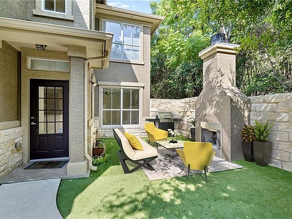 Bright 78704 end-unit Townhome with S. Lamar walkability. Relaxing private courtyard with enclosed masonry walls, fireplace, and quality turf upgrade. Unmatched privacy at the end of the community next to the woods. Open air office space upstairs with treehouse views. 1-car garage + storage bump-out perfect for fridge or shelving. Ample closet space. Pristine gated community. Just an 8-minute drive to Downtown and right around the corner from S. Lamar. Make it modern with just a few simple updates!FEMA - Unknown Restrictions: Yes Sprinkler Sys:Yes
