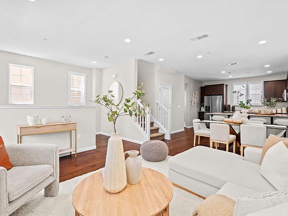 Built in 2018 by Pulte Homes, this free-standing design single family home with greenbelt view and garden walkway entrance offers contemporary lifestyle just minutes away from Googleplex and vibrant Mountain View Downtown. 3 spacious bedrooms, each with an en suite bath, offer ultimate flexibility, including a private lower-level suite ideal for guests or a home office. Grand primary suite features a walk-in closet, spa-like bath with free-standing tub, dual-sink quartz vanity, and glass-enclosed shower. Great Room with large windows finished with custom shutters, recessed lighting, high ceilings, and a French door opening to an inviting balcony overlooking peaceful greenery. Chef's kitchen is sleek and functional with granite countertops, stainless steel appliances including gas stove. Additional highlights include high ceilings throughout, laundry room with washer & dryer, powder room, multi-zone air conditioning, ample storage, and attached side-by-side 2-car garage. Immediate access to Pyramid Park that includes basketball court, fitness equipment, playground, dog park, lawn area and picnic tables. Easy access to all major Silicon Valley tech campuses, VTA, Caltrain, major commuter routes, Shoreline Amphitheater and highly rated Mountain View schools. Welcome Home!