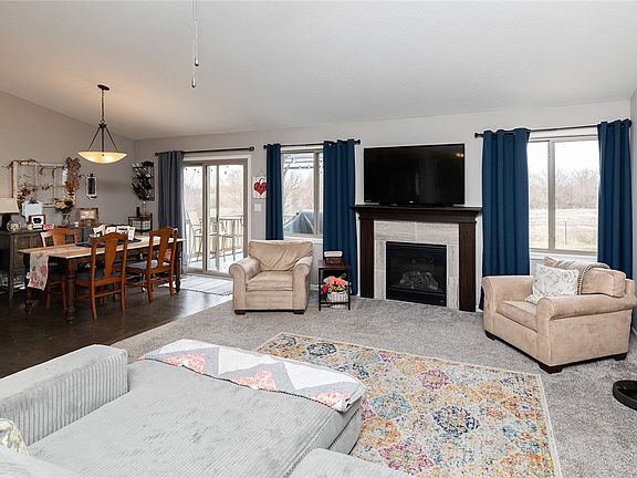 Gorgeous like-new Greenland Homes resale tucked away in south Ankeny's Clover Ridge is ready to call home! Open concept ranch plan with split bedrooms. This home features three bedrooms, 2 bathrooms and convenient mud room w/storage bench and laundry off the garage on the main level. Great room features a gas fireplace.Eat-in kitchen features quartz counter tops, GE appliances, dining space, painted woodwork and sliders leading to a deck overlooking back yard with views. New concrete patio and built-in fire pit perfect for entertaining! Great room features a gas fireplace. Newly finished basement boasts a spacious living room, large bedroom, and beautiful bathroom with tiled shower. Don't miss this one!
