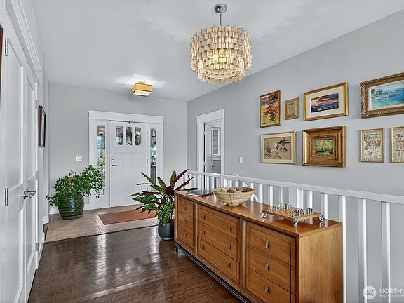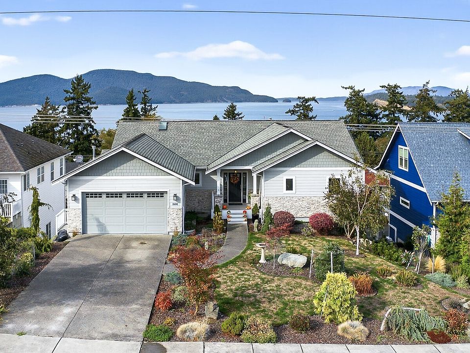 Stunning custom home where sweeping views of the Salish Sea, Guemes Channel, Mt Baker & more greet you the moment you enter. Warm & inviting vaulted living is filled with natural light from view-facing windows. Enjoy seamless main-level living with spacious primary giving 5-piece en-suite w/jetted tub, tiled shower & generous walk-in closet + 2 addtl bedrooms, full bth & laundry. Gourmet kitchen impresses with Bosch appliances, quartz counters & maple cabinetry w/thoughtful built-ins. Effortless indoor/outdoor flow from expansive deck to take in scenery. Daylight lower level offers great potential—expand living space w/rec room, addtl bdrm, gym, bath or finish as separate suite with kitchen & laundry for multi-generational living or rental.