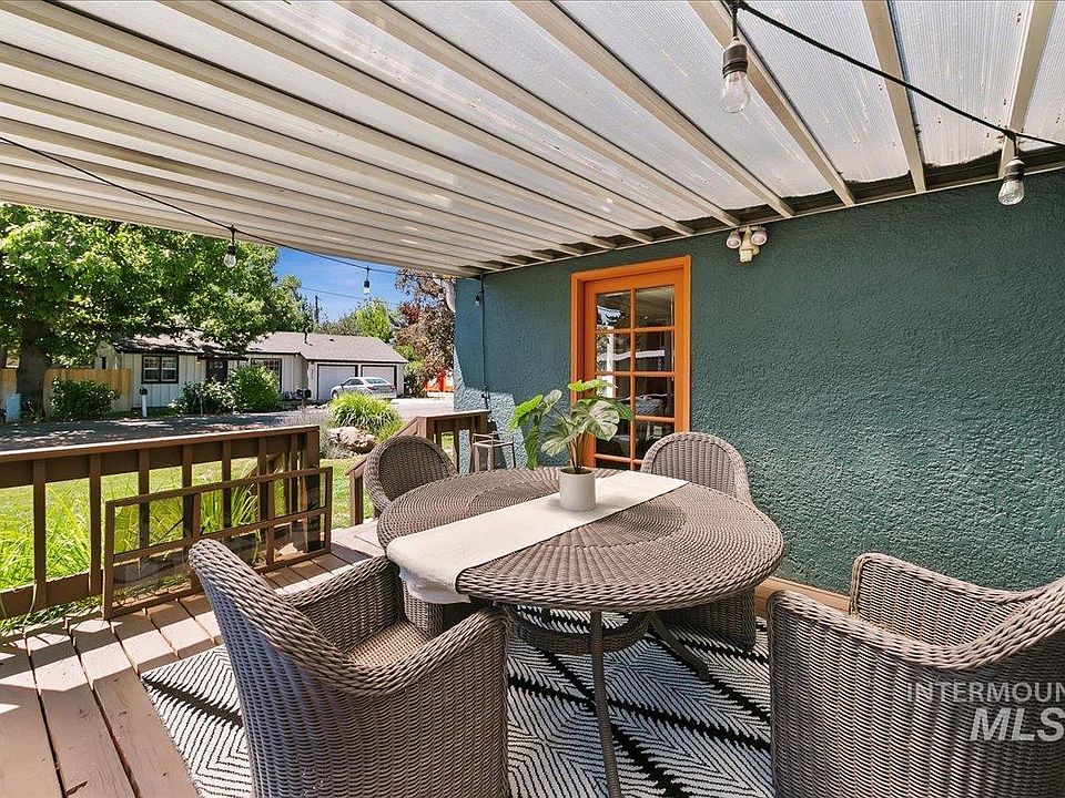 Charming North End Cottage with Mid-Century Flair! Tucked away in a prime location near Garden City’s vibrant amenities and foothill trails, this beautifully renovated gem is bursting with natural light and character. Enjoy stylish mid-century vibes throughout, with two comfortable living spaces, a cozy fireplace, and a spacious kitchen featuring a large pantry. The primary suite offers a serene retreat with a sleek walk-in shower and antique vanity. Step outside to a private backyard oasis filled with mature shade trees, garden beds, and fruit trees—perfect for relaxing or hosting on the covered deck. Need space for hobbies or storage? You’ll love the powered shop, RV parking, and carport. This home offers the perfect blend of charm, function, and location—don’t miss it!