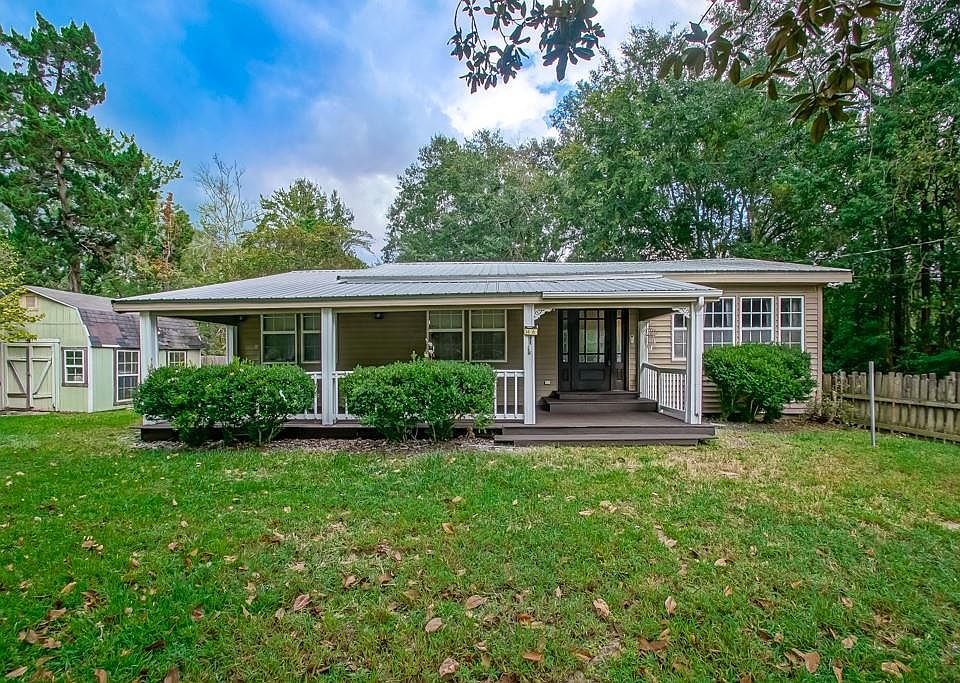 Modern Charm Meets Comfort: A fully renovated 3BR/2BA Retreat. Step into a beautiful living space nestled on a fully fenced 0.31-acre lot. The interior features: Sleek, easy to clean laminate wood flooring, open kitchen with electric cooktop, double wall ovens, triple sink, walk-in pantry, stunning granite countertops, custom built ins for added storage and cozy seating with serene outdoor views. The primary bedroom has a spacious layout with a private custom seating nook and luxurious soaker tub for the ultimate relaxation experience. The exterior includes a deep covered front porch roomy enough for an outdoor sofa, chairs, and dining table and a bonus lofted shed with windows and double doors, creative studio, or extra storage. Extras you’ll love: All new electrical wiring throughout, new electrical box, expansive double driveway with plenty of space for guests; quick 5-minute access to the interstate. Schedule you private showing today!