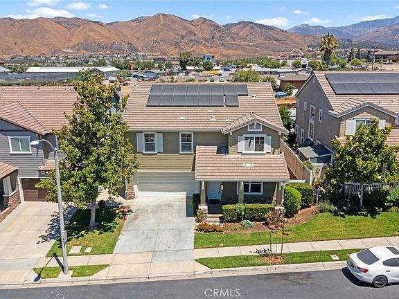 Iris Gardens gated community of Yucaipa, where comfort and convenience come together. This spacious 4-bedroom, 3.5-bathroom home offers 2,699 square feet of thoughtfully designed living space—perfect for family living and entertaining. The open-concept floor plan flows effortlessly from the family room—with its cozy fireplace—to the large, updated kitchen featuring a center island, walk-in pantry and modern cabinetry. It’s the perfect setup for both quiet evenings at home and lively get-togethers. Upstairs, you’ll find a generous loft and a smart bedroom layout, including Jack-and-Jill bedrooms with a shared bath and a spacious primary suite. The primary bedroom is a true retreat, complete with a walk-in closet and a luxurious en-suite bathroom featuring a soaking tub, walk-in shower, dual sinks, and a private toilet room. A separate laundry room with storage cabinets makes chores a breeze. With solar, using your dual A/C system becomes a little less stressful. The backyard is low-maintenance and ready for fun and also full of opportunity to create your personal oasis. Living in Iris Gardens means you’ll enjoy resort-style amenities, including a sparkling pool and spa, a kids’ play area, a clubhouse, and a fitness center—all within your secure, gated neighborhood. You’re also just minutes from local parks, schools, shopping, and the 10 freeway for an easy community. Solar is to be assumed by the Buyer but with the right offer the seller will consider payoff.