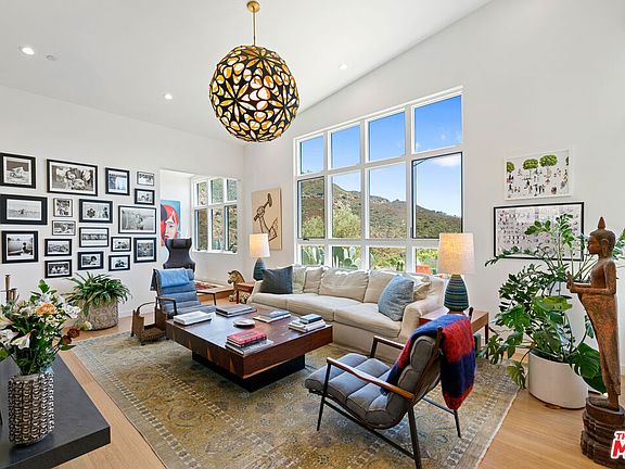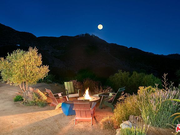 Where Privacy Meets Personality! A Modern Masterpiece Surrounded by Nature. Ever dream of a home where the only thing you hear at night is the sound of the breeze and maybe an owl? Where you can throw open your windows, see acres of your own land, and feel completely removed from the world (but still live in close proximity to all amenities)? Welcome to your modern escape, a newly built architectural showpiece that's equal parts luxury, design, and California cool. Created by ERW Design out of the Yale School of Architecture, this home is a masterclass in how bold modern design and nature can live in perfect harmony. From the moment you walk in, it's a full sensory experience. The grand entry opens to a 14-foot ceiling great room wrapped in glass, so every view looks like a painting. The custom Arto tile wood burning fireplace anchors the space stylish enough for cocktails, cozy enough for movie nights and even a built-in reading nook that whispers "curl up with a book and stay awhile. The chef's kitchen is pure inspiration. Fireclay wall tiles from San Francisco, handcrafted walnut cabinetry, a wine fridge (of course), and mid-century Dutch pendants that make even morning coffee feel glamorous. There's a walk-in pantry for the organized, and room for everyone to hang out and cook together. Just off the kitchen, the den is your new happy place with a gas fireplace, lush garden views, and even a built-in office space across from the separate laundry room. The primary suite? Think spa-meets-sanctuary. Porcelanosa vanities, Moroccan zellige tiles, custom walnut cabinetry, and a soaking tub with front-row mountain views. Seasonal waterfalls in sight, natural light pouring in, it's impossible not to exhale and it's on the first floor. Sustainability was never an afterthought here. Bamboo flooring downstairs, cork upstairs, solar panels, backup batteries, and an EV charger mean your home is as smart as it is beautiful. Step outside and it only gets better, a landscape that feels alive. Pepper trees, jacarandas, vegetable gardens, and a lime tree thrive under an automated watering system, while seasonal springs and waterfalls at the back of the property bring a dose of pure serenity. Room for pool, tennis court, horses. Three additional en suite bedrooms upstairs with an expansive deck overlooks the entire property. Need space for guests or a little separation? The private guesthouse (not pictured) offers a full bedroom, kitchen, and bath perfect for friends, family, or a creative studio. This isn't just a house, it's a lifestyle. A home that's peaceful but powerful, elegant but playful, private yet welcoming. Designed for those who want modern design, a connection to nature, and just a hint of magic in their everyday life. Main House: 3,253 sq ft | Guest House: 458 sq ft | Garage: 458 sq ft. 3 acres. Available Furnished