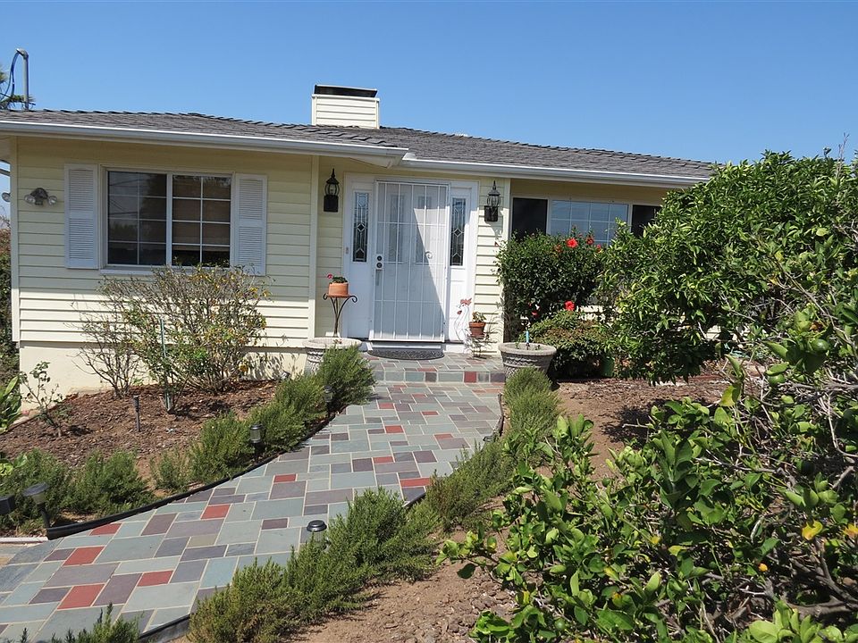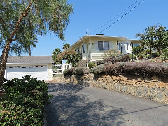 Charming single level 2BR+office that can be used for work out room or a baby nursery. On 1.35 acres w/panoramic views! Remodeled bright kitchen w/granite, white cabinets & double ovens. Home features wood beam ceilings, laminate floors, crown molding, beautiful fireplace, vinyl windows, shutters, french doors, newer copper plumbing & updated baths. Relax on the large tech deck w/sweeping views & enjoy the breezes. Small workshop under home. Several fruit, nut & avocado trees, RV pkg & room for horses!