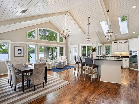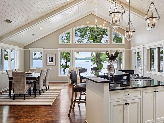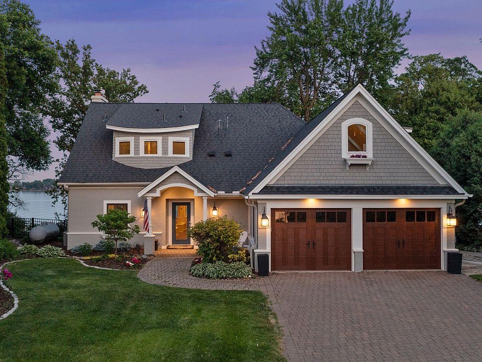 Exceptional cottage-style home on Lake Minnetonka with 123 feet of southeast-facing shoreline. This home has been beautifully updated with an open floor plan and provides tons of natural light and stunning panoramic views. The spacious kitchen and dining area showcase a vaulted shiplap ceiling and flows into the family room with a fireplace. The upper level includes the luxurious owner’s suite, loft and two additional bedrooms. The walkout lower level is perfect for lakeside entertaining and seamlessly connects to the patio and professionally landscaped yard. Additional features include a main level bedroom and office/den which could function as a 6th bedroom and a full wet bar/kitchenette in the lower level. Rip-rap hard sandy bottom lakeshore. Quiet cul-de-sac location.