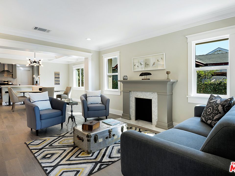 Step onto your front porch and into this re-imagined Contemporary Craftsman. Soft grey hues and natural stone surfaces create a traditional atmosphere, which is both sleek and modern. Three bedrooms align the front portion of the home, offering a sensible layout. Once through the kitchen, step down into what one could call The Ultimate Den. Enjoy an afternoon game in this sunken living room that is flanked a by wine-fridge-equipped wet bar and sliding glass doors to the side yard. This back portion of the home offers two more bedrooms, including a true Owners Suite on an upper level. Quality finishes throughout including Vintage 6" Grey Oak flooring, Stainless Steel appliances, and Quartz countertops. This 2,200 sq ft + home has capacity for a full family and guests. With all this charm, and quick access to DTLA, FWYs and Expo Line, you will see why Curbed LA has called West Adams, "2016 Neighborhood of the Year."