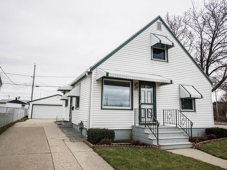 Room to roam in this exceptionally well maintained Bay View Cape. Nice sized eat-in kitchen, open living /dining room, master bedroom, and tiled full bathroom on main. Two bedrooms up. Partially finished lower level with bar, for even more living space. Good sized city lot with large 2.5 car garage. Convenient location, close to shopping and schools (Bay View High).