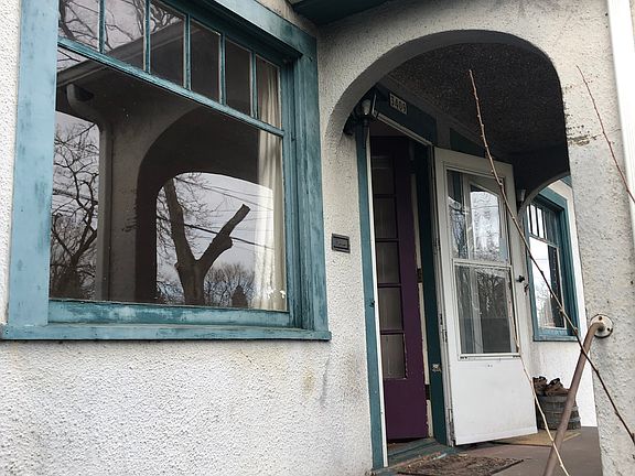 The building was built as a country schoolhouse in the 1890s and was converted to a triplex in 1929. It looks and feels historic. The space has 10-foot vaulted ceilings, picture rails, hardwood floors, built-in cabinets in kitchen and bathroom, and custom tile work. It's been well maintained and lovingly restored. The apartment has one bedroom, one full bath, a spacious living room, kitchen, and small hall closet. The big picture window in the living room looks out to the big trees and open fields of the park across the street.