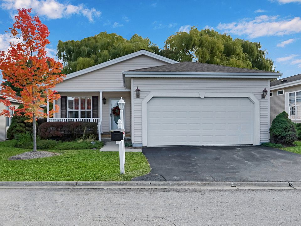 BRAND NEW FURNACE and one year old roof!! PRISTINE condition! Open floor plan in this desirable Woodfern II model! Come sit and enjoy the green space view from your SUNROOM! Eat-in Kitchen with all newer appliances! Very comfortable living and dining rooms! Inviting primary bedroom with bay window, double closets and private bath! Love crafting?? 2nd bedroom can be flex space! Lovely deck to have friends over for dinner and game of cribbage! Such a beautiful community with so much to do! Lake House ~ Fitness Center ~ Gardening ~ Walking/Bike paths~ Fishing Active 55+ community ~ What do you get for your monthly assessment? A lot! Including: grass cutting , snow removal, trash and recycling collection, water & sewer, 24-hour on-site management, privately maintained roads and walking paths, quaint lake lodge, social activities, and recreational areas. Care free living at it's finest!