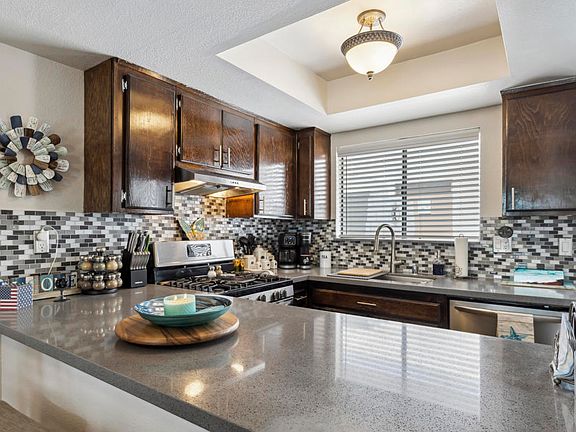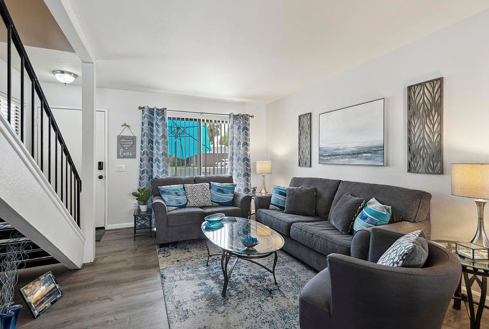 Welcome to 34071 Denise Way, a stylishly updated 3-bedroom, 2-bath condo in the gated Rancho Mirage Resort community. This 1,218 sq ft home features modern wood flooring, an open-concept living and dining area, and a beautifully remodeled kitchen with grey quartz countertops, tile backsplash, and stainless steel appliances. The layout includes a downstairs bedroom and full bath, with two additional bedrooms upstairs sharing a full bath--each with its own vanity. Enjoy mountain views from the upstairs patio or unwind on the private rear patio with an inviting outdoor fireplace. The home also includes a two-car attached garage and access to resort-style amenities: pools, spas, tennis courts, and clubhouse. Ideally located near shopping, dining, and entertainment in both Palm Springs and Palm Desert.