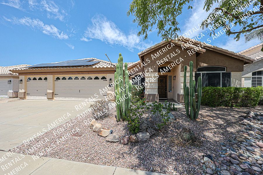 Amazing 3-bedroom, 2 bath home with sparkling pool!! This beautiful home is ready for move in. Walk into an inviting living room with dining area, family room with a gas fireplace and custom built in shelfs. Open concept kitchen with all stainless-steel appliances, all white cabinets, large kitchen island, granite counter tops, separate little bar area with a small refrigerator and perfect view of the backyard and swimming pool. Master bedroom has private entrance to the backyard, master bath equipped with double sinks, extra space for storage, separate shower and garden tub, walk in closet has lots of space and drawers. The backyard has a covered patio, lush landscaping, gated pool, private entrance to greenbelt with a playground. The Home is equipped for a wired security system, 3-car garage, and water filtration system. Easy access to freeways, close to Desert Ridge mall and much, much more. One Time Admin Fee: $300, Pet Deposit: $300/pet (if applicable), Municipal Tax: 2.3%, Service Fee: 2%. $39/month Resident Benefits Package, Helping Heroes Discount Available! Cats Allowed Ceramic Tile Disposal Dogs Allowed Dryer Garage Pets Allowed Washer
