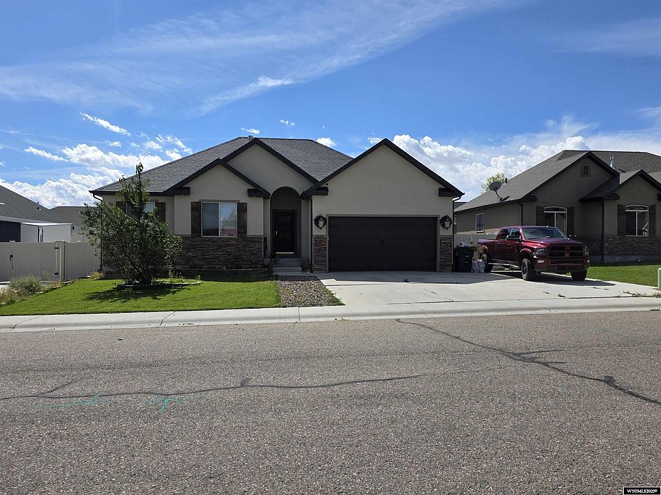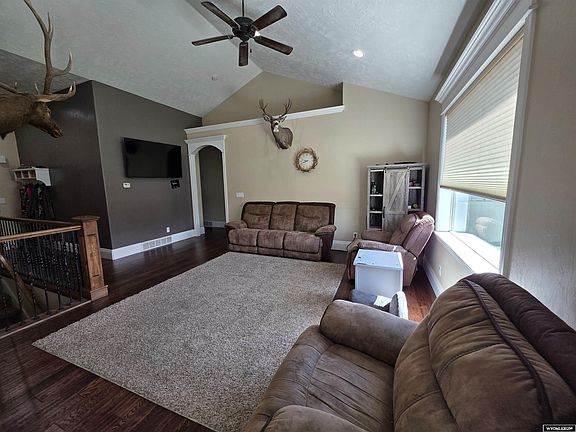 Perfectly located within walking distance to schools and shopping, this well-maintained home has so much to offer! Step inside this spacious home featuring a large kitchen with an island, XXL pantry, and gorgeous granite countertops. Enjoy the custom touches throughout, including crown molding, vaulted ceilings, hardwood floors, and custom cabinetry with under-cabinet, over-cabinet, and toekick accent lighting.The primary suite is a true retreat with a unique wood-trimmed tray ceiling, jetted tub, and shower combo. Bedrooms 2 and 3 are thoughtfully designed with custom built-in shelving and wainscoting wall accents. The basement is well underway, offering the framework for 2 additional bedrooms, a family room, wet bar/rec room, bathroom, and storage area. Heat runs and most of the electrical are already installed, with drywall and texture started. Even better—the seller is leaving all on-site materials, giving you a head start to finish the space your way. Outside, the home is fully landscaped front and back, complete with a sprinkler system, fenced yard, RV parking that extends into the backyard, and a large storage shed. This home has it all—location, style, and future potential! Don’t miss out—call/text Christy Moore with HomeSmart Realty Group at 307-389-0400 to schedule your private showing today!