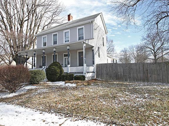 HERE'S YOUR CHANCE TO OWN A PIECE OF HISTORY! IMAGINE OWNING THIS UPDATED FARMHOUSE WITH IT'S WRAP-AROUND PORCH. MANY ORIGINAL CHARMING DETAILS W/ORIGINAL TRIM, CLAWFOOT TUBS & MORE. PICTURE OF HOME'S HISTORY IN THE FORMAL DINING ROOM. HUGE ENTRY FOYER WELCOMES YOU TO LARGE LIVING ROOM THAT FEATURES BUILT-IN BOOK SHELVES & FRENCH DOORS THAT LEAD TO SIDE PORCH, UPDATED KITCHEN W/ALL APPLIANCES. HANDY MAIN FLOOR LAUNDRY. UPDATED HALF BATH. FORMAL DINING ROOM HAS ACCESS TO BASEMENT. GORGEOUS STAIRWAY LEADS TO UPPER LEVEL W/3 BEDROOMS & 2 FULL BATHS. LARGE MASTER BATH HAS CLAWFOOT TUB W/ATTACHED SHOWER. OFFICE AREA LEADS TO 2ND BATH W/CLAWFOOT TUB & SECOND BEDROOM. SPACIOUS 3RD BEDROOM. PLUMBING, ELECTRIC HVAC ARE UPDATED. NEW ROOF IN 2017. CELLAR HAS ORIGINAL STONE FOUNDATION & TONS OF STORAGE. THERE'S ALSO A CELLAR DOOR FOR OUTSIDE ACCESS. ALL THIS...PLUS HUGE 3 CAR GARAGE W/LOFT THAT COULD BE EASILY TRANSFORMED TO MANCAVE OR HOME OFFICE. AWESOME PATIO W/FIREPIT. FULLY FENCED. KOI POND.