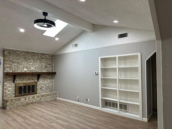 Move-in ready with a spacious, fully fenced backyard perfect for entertaining or relaxing outdoors. The updated kitchen features granite countertops, stainless steel appliances including the refrigerator, and opens to a large living area with a cozy fireplace and backyard views. Granite counters also extend into the modernized bathroom. Enjoy the shade of the covered back porch year-round.
