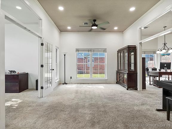 Spacious flex room on front of home has endless possibilities as an office, playroom, hobby room, workout space, etc. 10' ceilings throughout living areas provide expansive feel & smooth flow.