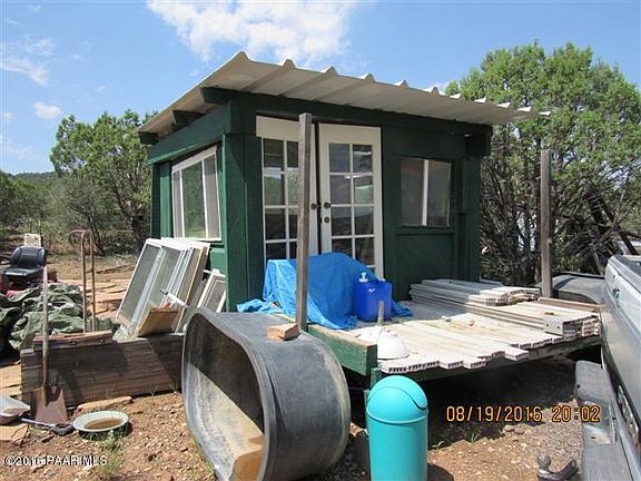 This property is not sold. 12x32 building, 2,500 gal water tank, electric, septic, asphalt drive, partial fencing, borders State land. Setup for RV. $54,900i
