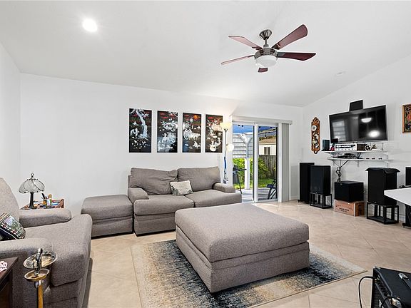 Charming corner-lot home with an inviting open floor plan, boasting volume ceilings and tasteful tile flooring throughout. Enjoy the comfort of ceiling fans in every room. The layout features split bedrooms for added privacy. The kitchen is a highlight, adorned with a beautiful breakfast bar. Step out onto the backyard patio for relaxation, and appreciate the convenience of a utility shed for additional storage. This residence harmonizes style and practicality, offering a delightful living experience. Big ticket items are newer: 2018 roof, 2023 A/C, 2021 water heater.