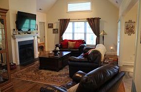 Lovely, one level maintenance-free home with pond! Huge gourmet kitchen with gas range, custom cabinetry, slate floors, granite countertops, lots of storage, huge pantry, living room with cathedral ceiling, fireplace with gas logs, hardwoods in family room, hallways and bedrooms, master bedroom with trey ceiling, & large master bath with huge walk in tile shower,526 sq ft of walk up attic storage, screened porch on beautifully manicured 1.73 lot.