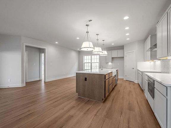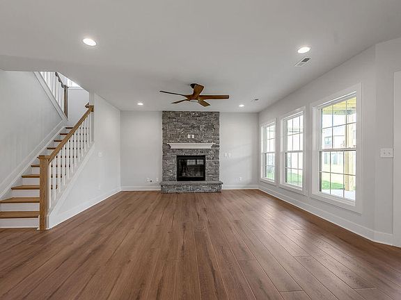 The Albany is a spacious two-story plan that makes great use of available square footage, including a luxurious primary bedroom suite, and includes a two-story covered patio/deck. It also foregoes the formal living room in favor of a flex area and has a spacious fifth bedroom and full bath, and a covered patio. A two-story foyer creates an open entry, and the very open layout of the family room, kitchen, and breakfast area create a large, shared living space. Nine-foot ceilings are standard on the first floor. The family room adjoins the covered patio, and the first floor fifth bedroom is located at the rear of the home.