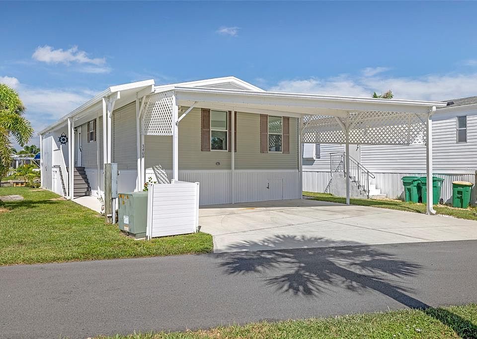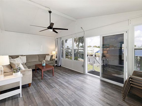 Discover this beautifully maintained 2-bedroom, 2-bath home in the highly sought-after 55+ community of Pelican Harbor Mobile Home Estates in Punta Gorda. Perfectly positioned on gulf-access waterfront, you’ll enjoy a quick ride out to Charlotte Harbor. This home features a 7,500 lb boat lift with a brand-new cover, concrete seawall, and private dock— ADDED BONUS ** the community offers secure boat and RV storage at no additional cost. Inside, the kitchen has been completely transformed with granite countertops, a center island/breakfast bar, extra cabinetry, crown molding, vaulted ceilings, and a stunning backsplash. The spacious living/dining area flows into a sunroom addition, completed in 2020, that is 100% hurricane-impact rated. A mini split A/C was added in 2021 for year-round comfort, along with reflective ceramic tinted film to help keep things cool. The home is elevated for added peace of mind, and the owners have created a beautiful backyard retreat with a pavered patio—perfect for enjoying SWFL sunsets while you enjoy your favorite beverage. Storage is abundant with multiple interior and exterior storage areas, including a 6’x12’ built-in wall unit in the bonus room. The master suite features a walk-in shower, granite vanity, and added cabinetry. Additional upgrades include wood-look vinyl flooring throughout, new ceiling fans, a 2023 roof, updated outlets and switches, Trex Select deck stairs, and meticulous upkeep inside and out. For extra security, the fully transferable flood policy—paid in full through April 2026—conveys with the home, even though it has never flooded. ** EXTREMELY LOW HOA ** abundant amenities, adjacent public boat launch and direct Gulf access are just a few reasons this could be your perfect year-round home or snowbird destination. Community amenities include a heated pool, clubhouse with regular activities, shuffleboard, bocce ball, horseshoes, and the RARE perk of no-cost secure boat/RV storage. Financing is available—our preferred lending partner has proven financing solutions specifically for buyers in this 55+ modular home community. Located close to golfing, beaches, fishing, parks, restaurants, shopping, and only 10 minutes from Downtown Punta Gorda.