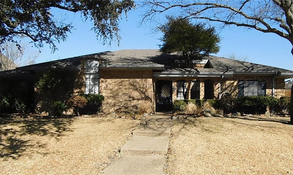 Single story featuring large split bedrooms, sun room, stained concrete flooring, built ins, wood burning masonry fireplace, granite counter tops in kitchen and gunite play pool with spa. Oversize garage with enclave for bicycles, lawn equipment and more. Stained board on board fence and storage shed. Kitchen appliances have been removed. Good home needs a tiny bit of tlc.