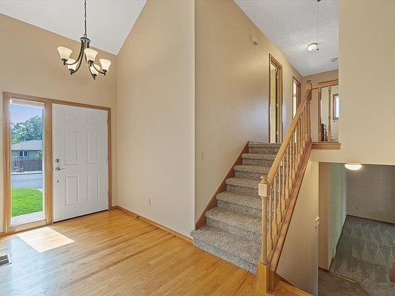 One owner home for 37 years! Extremely well maintained! Oversized lot and cul de sac setting for this 4-level home. Hardwood floors in entry and dining area, nice open kitchen with eating space filled with skylights, Quartz countertops, all appliances remain, living room with cathedral ceiling and gas fireplace, large primary with walk in closet, double sinks and separate shower, family room, laundry and ½ bath in lower level along with ample storage and additional bedroom and rec room in 4th level. All wood windows, newer paint, gas hot water tank & furnace, 2 car attached garage! Walk to the water park! This home has a lot to offer!