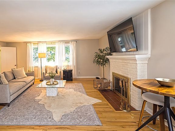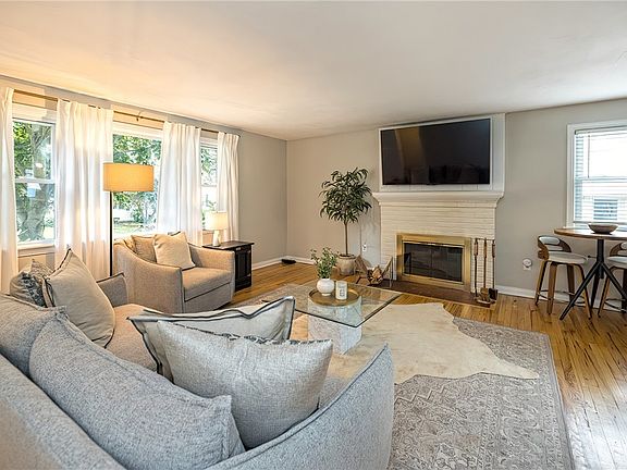 Wonderful neighborhood! This lovely three bedroom ranch features an open floor plan with new kitchen appliances & gleaming hardwood floors throughout. Cozy up to the fireplace in the winter or relax on the covered patio in the summer overlooking the beautiful landscaped yard. Oversized 2 car garage. Freshly painted interior (walls, ceilings & trim). Glass block windows in the basement. Washer & Dryer included.