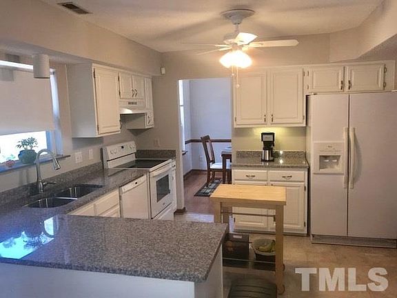 Recently updated 3/2.5 w/2 car garage minutes from RTP, RDU & Brier Creek. Updated kitchen w/granite counters, newly painted cabinets, new range and nickel hardware. Updated interior paint including garage. All baths feature new granite counters. Updated fixtures and hardware. Open floor plan with formal living, dining and den w/fireplace. MBR with vaulted ceiling, large bath with dual vanity, garden tub, shower and WIC. Well maintained cul-de-sac lot with large deck overlooking private backyard.
