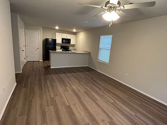Washer and dryer connectionsGranite countertopLarge pantryBuilt in microwaveBlack appliancesVinyl tile flooring