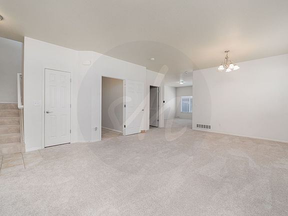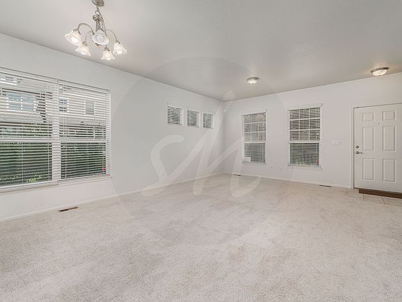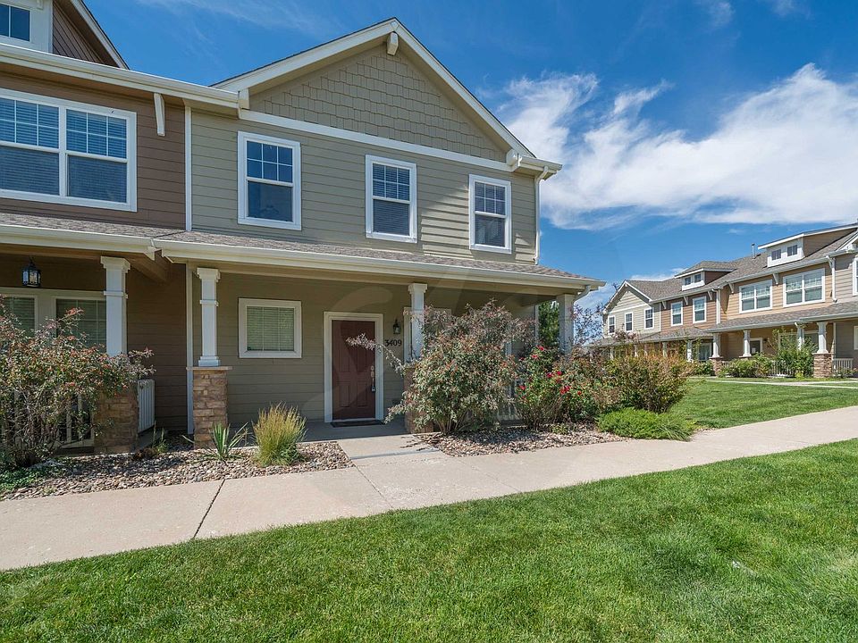 Two story end unit townhome in the Soaring Eagles neighborhood. Entering this home you are welcomed by a large living room and formal dining space with loads of natural light. There is a 1/2 bath for guests convenience and a main level laundry space. The open kitchen is equipped with stainless steel appliances, large island and plenty of storage space. The family room provides a gas fireplace to cozy up to in our Colorado winters. All bedrooms are located on upper level including a spacious primary bedroom with vaulted ceilings a walk in closet and attached ensuite with double separate vanities, large soaking tub and walk in shower. Two additional bedrooms and a bathroom finish this upper level. Enjoy the convenience of air conditioning and detached double garage. Enjoy outdoor spaces such as covered front porch and a private back patio. Close to schools, shopping and parks.