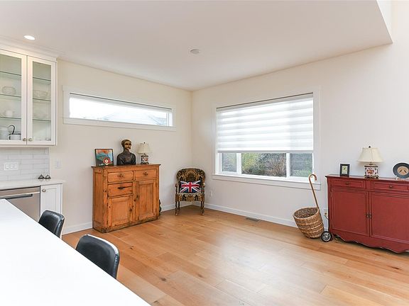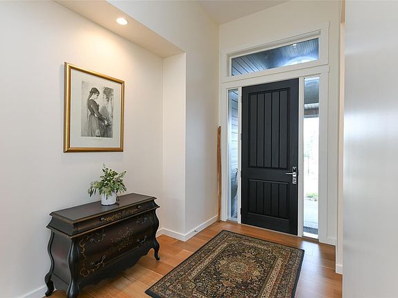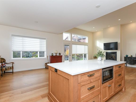 West Coast rancher with elegant detailed finishing. Main living area features full-window feature wall with approximately 12 foot ceilings and natural light. The home has an impressive kitchen with glass feature doors, timber shelving, indirect lighting, brick tiled backsplash, pantry and entertainment sized island with quartz countertops. Includes all appliances including gas range, microwave in the island, HRV, heat pump, solar assist panels (Energuide rating of 34) and under-height basement-crawl space for storage with access/stairs in garage. The master bedroom features 5 piece ensuite with heated tiles, sconces & walk-in closet with built in shelving. Professionally landscaped yard with 2 patios, mature foliage, and sturdy fence. Inside and out, this home has been very well loved, freshly painted with neutral white colour scheme, shows as brand new. 2020 custom home build. Walking trails past ponds nearby. This home is move-in ready, just turn the key and relax.
