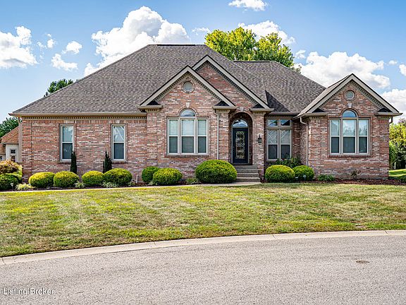 Southern Estates is one of Southern Indiana's premier neighborhoods, and this cul-de-sac home delivers over 4,200 finished sq ft of style and function. The main level features soaring ceilings, a stone fireplace, and a kitchen with custom cabinets, granite counters, and walk-in pantry. The primary suite offers dual vanities, walk-in shower, and direct laundry access. A finished daylight basement expands living space with a second kitchen, full bath, bedroom, and open area with fireplace and built-ins. Outdoors, enjoy a spacious deck overlooking the fenced yard. With a new roof and thoughtful updates throughout, this home blends comfort, versatility, and location..