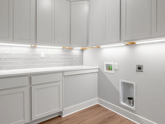 Homecrest Arbor cabinets, and stainless appliances including an vent hood and drawer style microwave. This home has a drop zone coming in from the garage and a covered back patio for outdoor entertainment. The primary bedroom suite is located at the rear of the house and includes a luxurious upgraded private bath with double bowl vanity. Upstairs, two bedrooms and a full bath. A large unfinished attic storage area is located off the loft. Exterior details include a covered front porch with craftsman style columns, and multiple gable-end roof design. Job 210PB Complete and move-in ready!