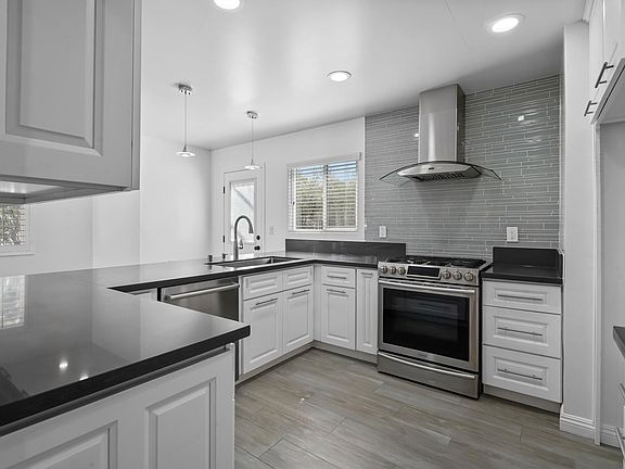 This beautifully updated home in the highly sought-after La Crescenta neighborhood is a must-see! Perfectly situated on a peaceful cul-de-sac, this charming residence seamlessly blends comfort with modern living. As you step inside, the living room welcomes you with classic touches, including a cozy fireplace, elegant crown molding, and gleaming hardwood floors. The remodeled kitchen is a standout feature, boasting abundant cabinetry, a garden window, and essential appliances like a stove and dishwasher. Adjacent to the kitchen, the dining area flows effortlessly into a large family room, where vaulted ceilings and an abundance of natural light create an inviting space for both entertaining and daily gatherings. This home offers a true primary suite, a comfortable second bedroom, and a versatile third bedroom that can serve as an office, nursery, or additional cozy bedroom. Additional features include central heating and air, an EV charging station, a detached garage, double-pane windows, ample storage, and a drought-tolerant landscape designed for easy maintenance and lower water costs. Residents will enjoy access to award-winning Blue Ribbon schools, including top-ranked Abraham Lincoln Elementary, Rosemont Middle, and Crescenta Valley High School. The home is also conveniently close to shopping, dining, local parks, and offers easy freeway access.