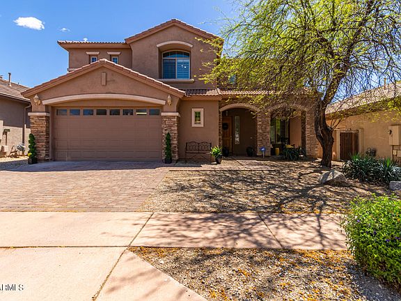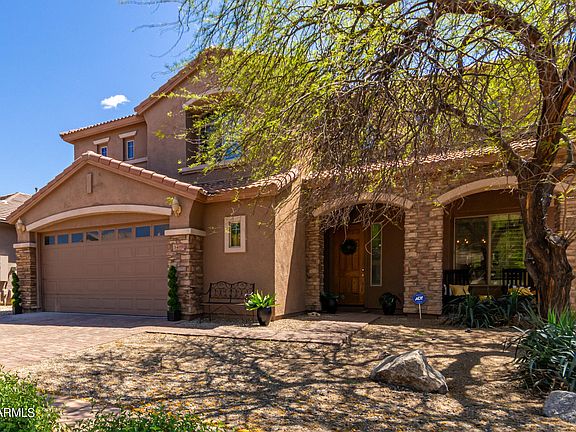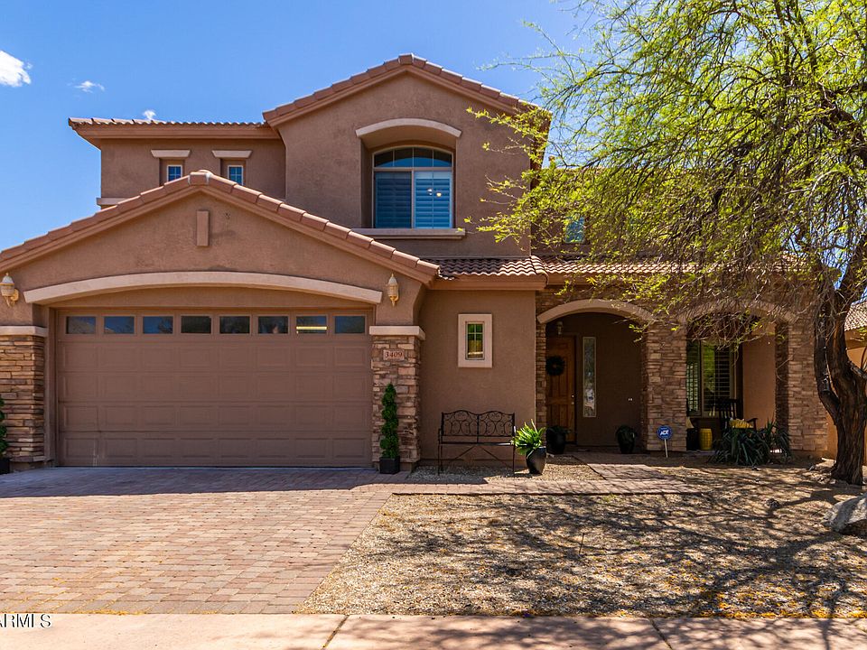 Pride of ownership is shown in this remarkable property located in the Tramonto Community! Fall in love w/a perfectly flowing layout offering spacious living areas adorned w/high ceilings, soothing palette throughout, gleaming wood-look tile floor, & plantation shutters. The stunning chef's kitchen is a cook's delight, featuring ample cabinetry, a pantry, granite counters, double wall oven, SS appliances, recessed lighting, a stylish tile backsplash, a wine fridge, & a convenient center island. Discover a loft w/endless possibilities! The main retreat boasts soft carpet, private outdoor access, an immaculate ensuite w/dual sinks, & a walk-in closet. Host fun gatherings in the amazing backyard, including a full-length covered patio & a sparkling swimming pool! This gem won't disappoint!