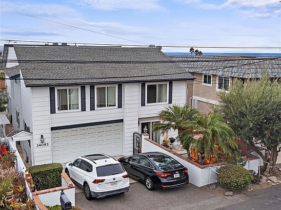 Perched above the coast in Dana Point, this well-maintained duplex captures sweeping panoramic ocean views from both levels and offers an exceptional location just moments from the vibrant Lantern District, Strands Beach, and the scenic Dana Point Headlands trails. The property consists of two spacious residences, with opposing street entrances—each with generous parking and thoughtfully designed layouts. The upper unit at 34092 Seville features direct access to a two-car garage along with two additional driveway spaces, while the lower unit at 34091 Ruby Lantern includes its own two-car garage (non-direct access) plus two driveway spaces. An additional single-car garage is currently leased separately. This rare coastal investment opportunity blends walkability, ocean views, and convenience in one of Dana Point’s most desirable neighborhoods.