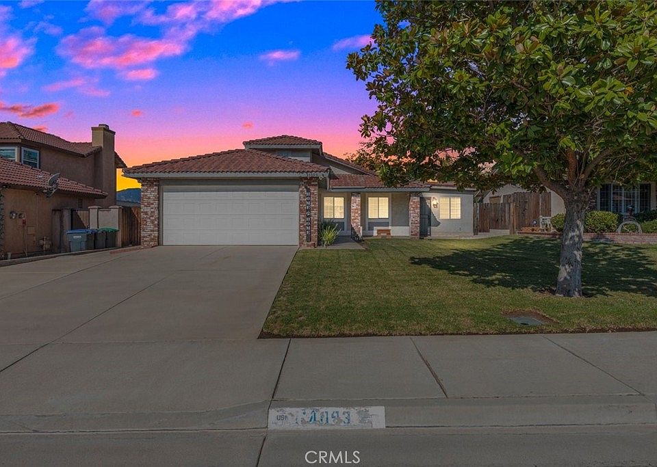 Welcome home to this beautiful 3 bedroom 2 bath single story home centrally located in a very low tax area with NO HOA neighborhood. This home has a fantastic floor plan, so in addition to the 3 bedrooms there is a large Den/Office/potential 4th bedroom area that really seperates this home as far as useable space within the home. The kitchen is well laid out and very functional with lots of cabinet/storage space. This home has laminate and tile flooring throughout, high ceilings, wide hallways for easy access inside the home, formal dining room and living room with a real wood burning fireplace. The backyard is large and useable with a shed and jacuzzi with 220V. Conveniently located to all shopping, 15/215 freeways, schools, businesses and entertainment. Don't miss this one!