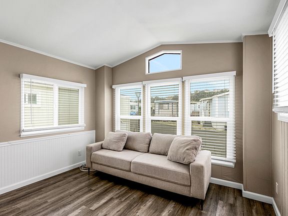 This 636 sq. ft. manufactured home offers a comfortable and inviting living space with 1 bedroom and 1 bathroom. The spacious living room is perfect for relaxing or entertaining, while the kitchen includes a modern oven for easy meal prep. Enjoy a low-maintenance lifestyle in a charming community with a peaceful coastal vibe, just minutes from beaches, shopping, and dining.