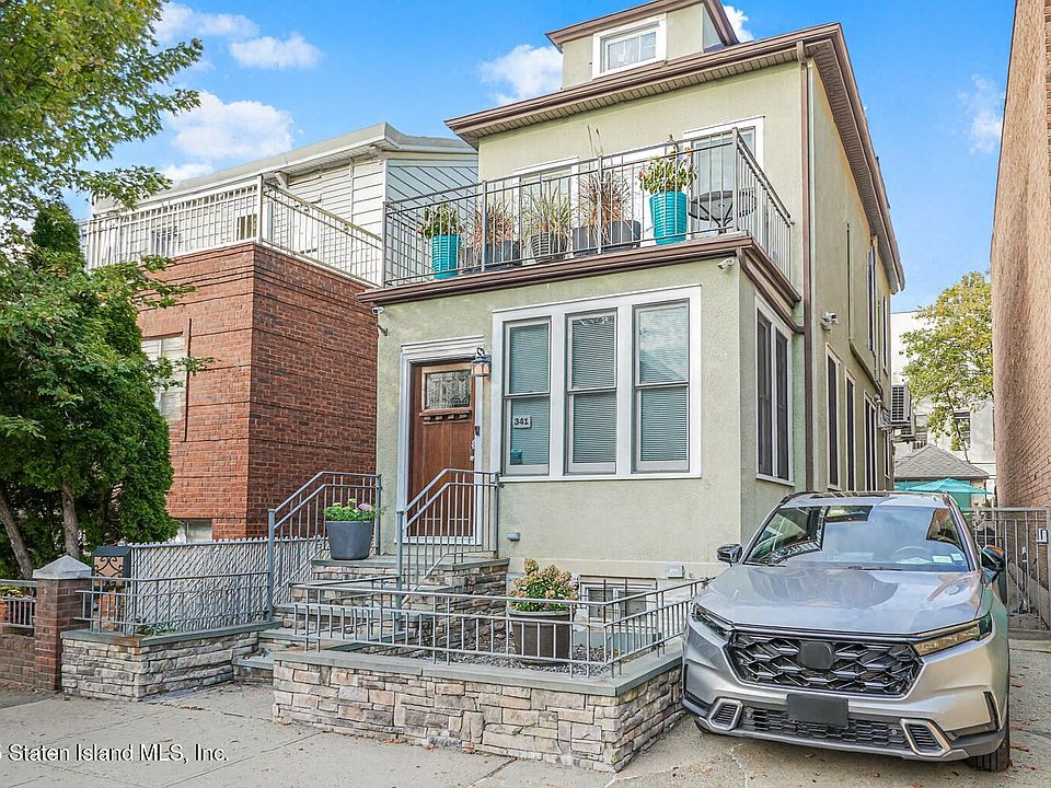 Welcome to 341 91st Street in the heart of Bay Ridge! This timeless residence that blends classic 1925 architectural charm with modern updates designed for today's lifestyle is being offered for the first time in 100 years! This opportunity comes around once in a century! This fully detached single-family home offers an inviting layout that begins with an entry foyer/ sunroom, where original French doors open into a bright and welcoming living room with oak hardwood floors, original moldings, and 9-foot ceilings. The home's design remains true to the original builder's aesthetic, preserving a classic style while seamlessly incorporating thoughtful renovations. A remodeled kitchen serves as the heart of the home, featuring custom cabinetry, mosaic marble flooring & backsplash, all modern appliances, and quartz breakfast bar that makes every day dining effortless. For more formal occasions or large family dinners, a spacious dining room provides the ideal setting. A perfectly appointed powder room, and wooden mud room off the kitchen complete the first-floor layout. On the second floor there is a full bathroom, and a total of three bedrooms with hardwood floors throughout, the secondary bedrooms are nice sized & the spacious primary bedroom also enjoys direct access to a private outdoor patio. This home offers additional living spaces as well - on the top floor is a finished attic with windows on all sides, heating & cooling unit, oak flooring - perfect for a kid's playroom, guest quarters or home office. The full basement is a blank slate with ample storage, laundry area & ¾ bath. The outdoor space is so rare and unique - with not one, but two garages that can be used for a car, an outdoor workshop, man-cave or she-shed! This home also has a private driveway—an invaluable feature in an area where parking is scarce. Beyond the home itself, the location is unbeatable. With convenient commuter access to New York City, residents will appreciate the ease of travel while while enjoying the comforts of this highly desirable residential neighborhood. Additionally, the vibrant shops, restaurants, and conveniences of 3rd & 4th Avenue are just moments away, ensuring access to everything you need.
