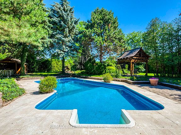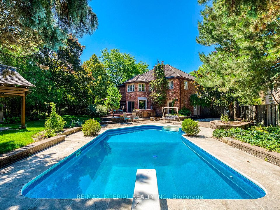 Motivated Seller. Welcome to this stunning 4-bedroom, 5-bath executive home nestled on a rare 0.59-acre lot in Oakville's prestigious Eastlake community. Located on a quiet cul-de-sac with no rear neighbours, this all-brick home features a tiled roof, mature landscaping, and exceptional curb appeal.Inside, you are greeted by a sun-filled living room with floor-to-ceiling windows and a gas fireplace, a formal dining room perfect for entertaining, and a spacious cream-toned chefs kitchen with granite counters, a large centre island, and abundant cabinetry. The family room with its own fireplace, along with the bright breakfast area, opens onto a resort-style backyard.Step outside to your own private oasis featuring a pool, hot tub, pond, pergola, and a beautifully landscaped golf practice area with putting green and sand traps, perfect for relaxing or hosting family and friends.The main level also includes a dedicated office, powder room, and a laundry/mudroom with garage and side-door access.Upstairs, the luxurious primary suite offers a seating area with fireplace, a custom walk-in closet, and a spa-like 6-piece ensuite. Three additional bedrooms are generously sized and include either private or Jack & Jill bath access.A finished basement adds a large recreation room, 3-piece bath, and ample storage.Located within top-ranked school zones (EJ James & Oakville Trafalgar), and just minutes from GO Transit, highways, and all major amenities.Don't miss this rare opportunity to own a private resort-style home in one of Oakville's most sought-after communities.Book your showing today!