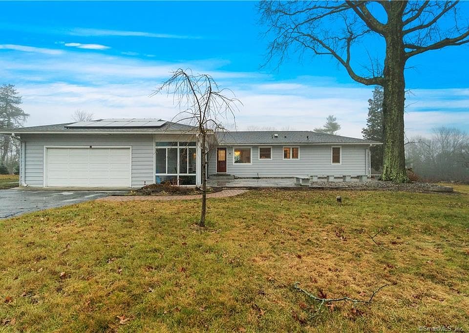 Pristine move in ready ranch! Situated on 1.3 acres of open rural land while in a friendly cul de sac neighborhood...best of both worlds. Whether you choose to enter through the expansive living area, or through the sweet kitchen, this home will welcome you with bright airy, contemporary vibes. The floor plan is very versatile for someone who loves home entertaining. The impressive windows allow you both the view of the morning sunrise, then ending the day with peaceful sunsets. Hardwood floors through out, along with wood burning fireplace, already plumed for gas if desired. The kitchen, set up for "foodies" with stainless steel appliances including a Viking stove and Subzero fridge. Granite countertops. Directly off the kitchen is the impressive patio all ready for barbecues and summer fun. Three nice sized bedrooms. Along with crisp clean 1.5 baths. 2 Bay garage with enclosed sun porch. Generator! Solar panels for efficiency! Close proximity to New Haven, Yale, and commute to NYC. There's a shared Well with the other homes in cul de sac, maintained and tested regularly by on site prof. living in the cul de sac. Homeowner pays $30 quarterly. Septic pumped 09/2021. Radon installed 2018. Roof 2018. Furnace and HVAC 2021. All Furnishings are negotiable. Shared Well on separate electric service. Well is maintained and tested regularly by on site prof. living in the sul de sac. Homeowner pays $30 quarterly. Solar panels and agreement convey, Doc. on request. Septic pumped 09/2021. Radon installed 2018. Roof 2018. Furnace and HVAC 2021. All Furnishings are negotiable!