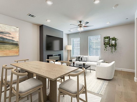 Electric fireplace feature wallEnormous windowsOversized two-car garageFully landscaped lotOpen office nookLarge windowsWhite quartz countertops