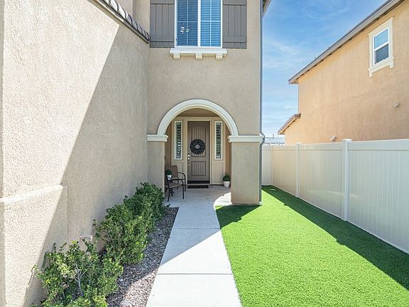 The outdoor spaces are beautifully designed for easy upkeep and outdoor fun with drought-tolerant landscaping updated in 2023. The fully fenced backyard features artificial turf, patio space, and pavers extending along the side of the house.