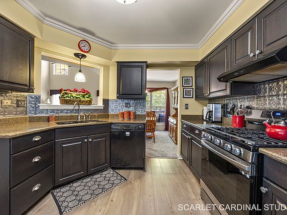 Cozy wood-burning fireplaceSpacious eat-in kitchenQuartz countertopsSeparate dining roomCeiling fanNewer vinyl plank flooringRefaced cabinets