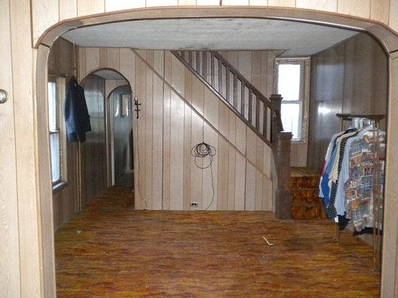 2 car detached garage; basement has finished, heated room in fix-up condition; workshop in basement; walk-out basement to yard; roof currently leaking. Water damage throughout.