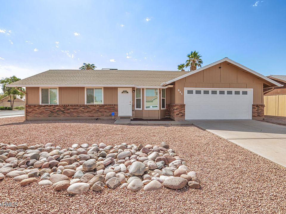 NO HOA! Welcome to this charming single-level home nestled on a prime corner lot! Offering 3 beds, 2 baths, a 2-car garage, and a low-care landscape. The inviting interior features fresh paint and new baseboards, tons of natural light, wood-look tile flooring in common areas, and new plush carpet in bedrooms. The living room is paired with a bay window! You'll love the open concept living/dining room, perfect for entertaining. Adjacent is the kitchen, boasting SS appliances, granite counters, subway tile backsplash, recessed lighting, and ample white cabinetry. Main bedroom has a walk-in closet & a private bathroom. Off the kitchen is the laundry room with shelving. Discover the large backyard with a covered patio & RV gate! With room for a pool, make it your outdoor oasis. Move-In Ready!