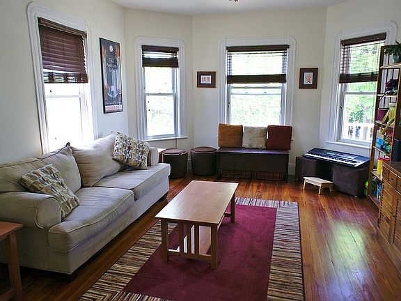 Park in the exclusive driveway then walk to everything from this amazingly-located Davis Square condo. Sun-drenched, just off the bike path to Davis, near parks, close to shopping at Porter and the future Green Line in Ball Square, this unit boasts high ceilings, ceiling fans, newer windows on all sides, eat-in kitchen with granite countertops, built-in cabinet that opens to both dining room and kitchen, two spacious bedrooms, one with huge walk-in closet (or nook office), working pocket doors (turn living room into guest room), plus shared entryway and porch with great sunset view. Wall unit conceals a coat closet & workspace. Abundant storage and exclusive w/d in basement in plus hook-ups in unit. Upgrades since 2011 include countertops, gourmet convection oven, bathroom updates, new roof, rebuilt chimney, exterior paint, insulation, and new furnace with condenser coil for central AC. Exterior boasts lovingly-maintained common yard, friendly neighbors, and great curb appeal.