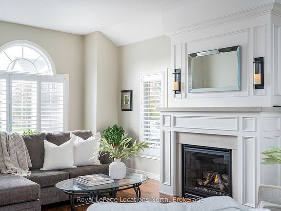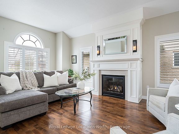 Nestled on a picturesque street in the sought-after Creekside community, this exceptional bungalow offers effortless, turn-key living. Thoughtfully designed and meticulously maintained, this home combines elegant style, comfort, and practicality, perfect for both everyday living and entertaining. From the moment you arrive, you'll be charmed by beautifully landscaped gardens and a welcoming west-facing front porch. Inside, the bright and spacious foyer with vaulted ceiling leads to an open-concept living area filled with natural light. A stunning picture window and cozy gas fireplace create an inviting atmosphere. The new kitchen is a dream showcasing timeless cabinetry, a sit-up breakfast bar, and newer stainless steel appliances. Step from the dining area to the private backyard, featuring a large deck with hot tub surrounded by lush cedar hedging for exceptional privacy. The main floor features two generous bedrooms and two full bathrooms, including a peaceful primary suite with walk-in closet, ensuite, and direct access to the deck, the perfect spot for morning coffee. The guest bedroom enjoys its own access to a thoughtfully designed 3-piece bath with a curb-free, walk-in shower using the premium Schluter waterproofing system, ideal for accessibility and ease of use. Main floor laundry adds everyday convenience. The finished lower level offers bright, versatile living space with recessed lighting, a gas fireplace, a third bedroom, stunning full bathroom (also with curb-less shower), and an expansive flex room. A double garage with inside entry completes this exceptional home. Designed with accessibility in mind from wider doorways to barrier-free bathrooms and ideally located across from a park and steps to the Collingwood Trail system, this home offers the perfect blend of lifestyle, comfort, and community - a place where every detail has been carefully considered for years of enjoyment.